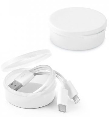 Cabo USB 3 em 1 em ABS e PVC. Adequado para carregar dispositivos móveis. Dispõe de um conector USB tipo C e um conector 2 em 1, compatível com entradas micro USB e sistema operacional iOS .